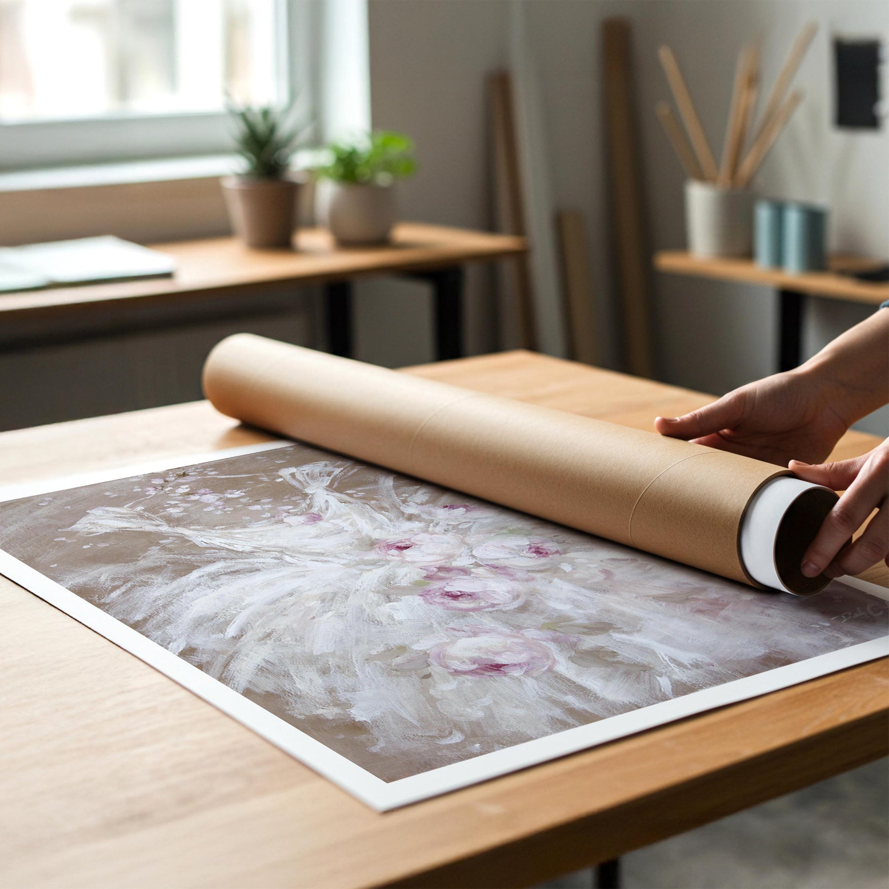 Giclee printed on archival-grade, pH neutral and acid-free canvas. The canvas is unstretched and shipped in a mailing tube, providing a more cost-effective shipping option for large canvas prints and international customers.