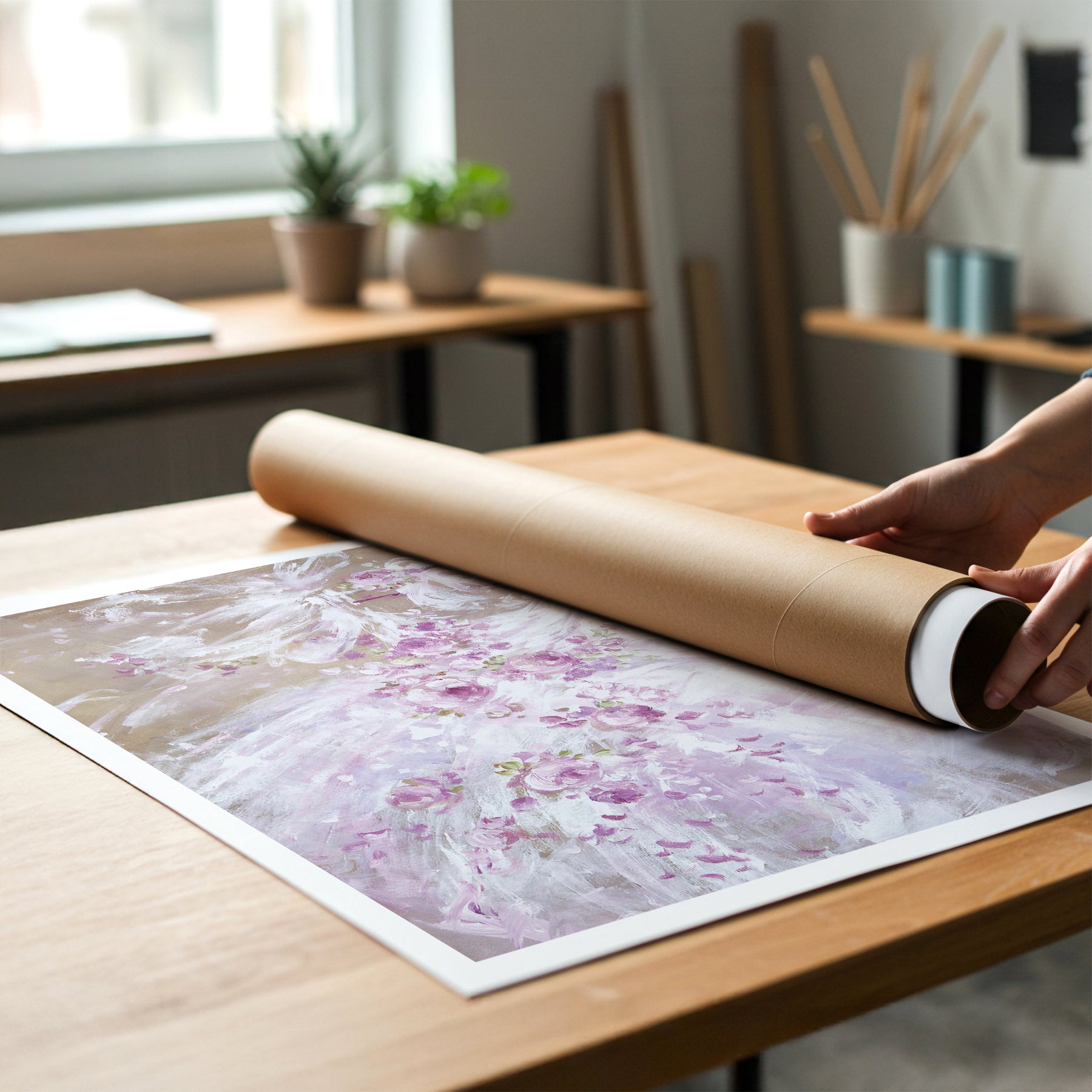 Giclee printed on archival-grade, pH neutral and acid-free canvas. The canvas is unstretched and shipped in a mailing tube, providing a more cost-effective shipping option for large canvas prints and international customers.