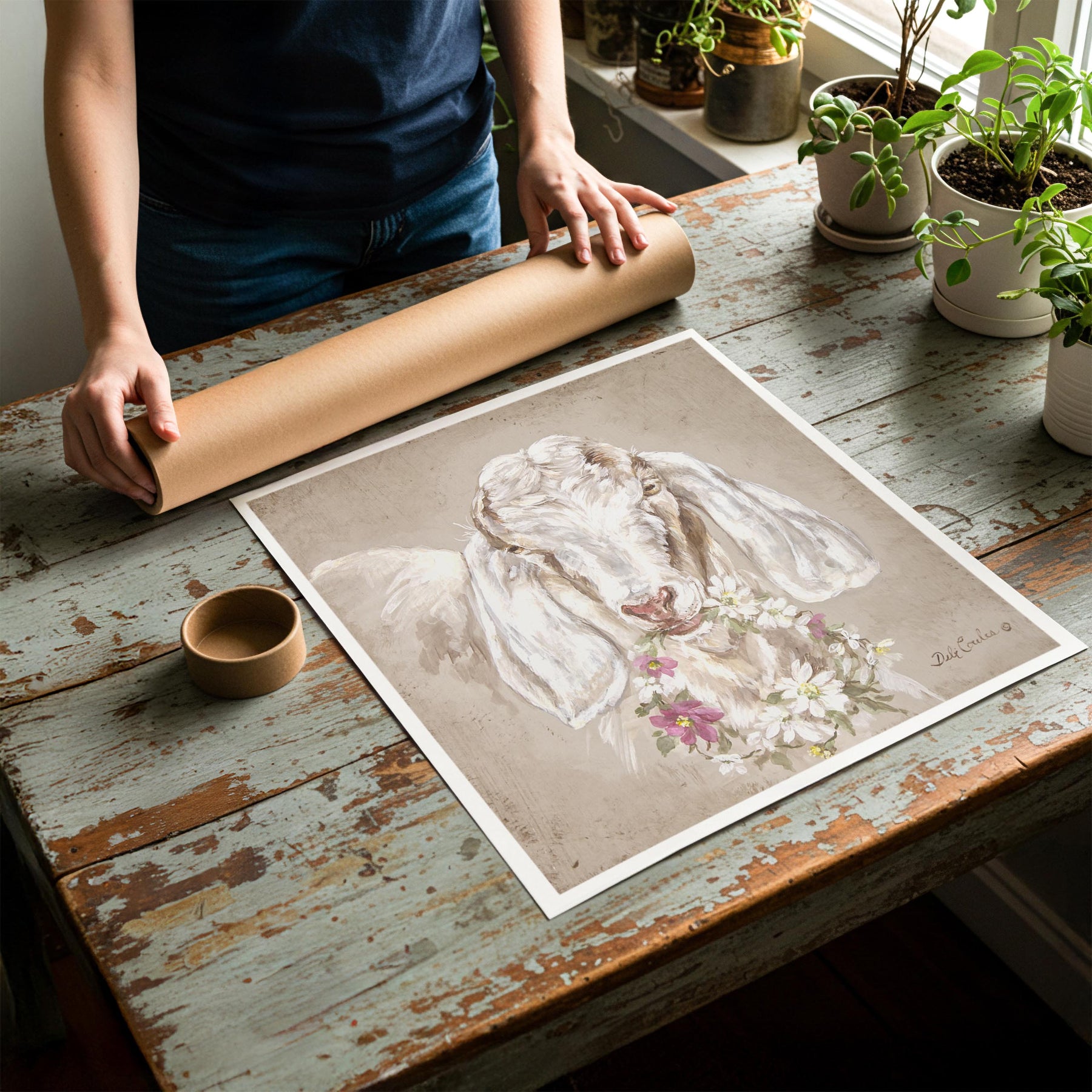 "Goat with a Wreath" - Farmhouse Artwork by Debi Coules