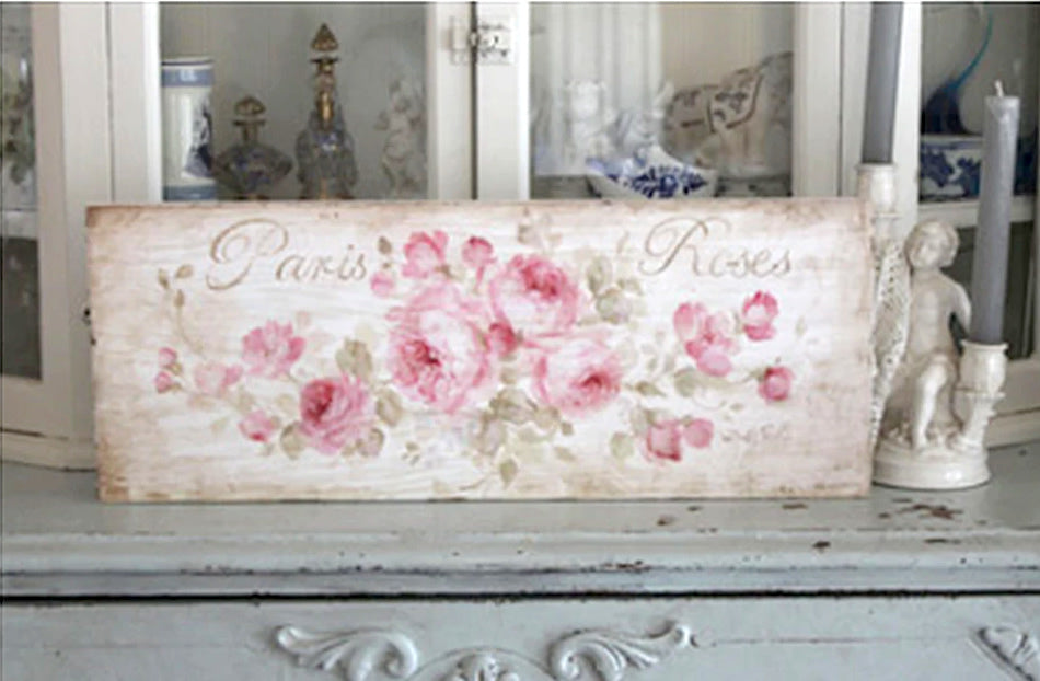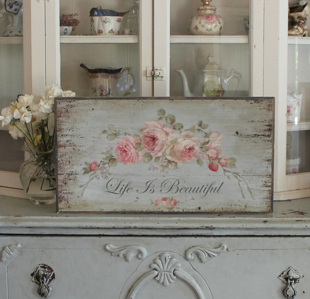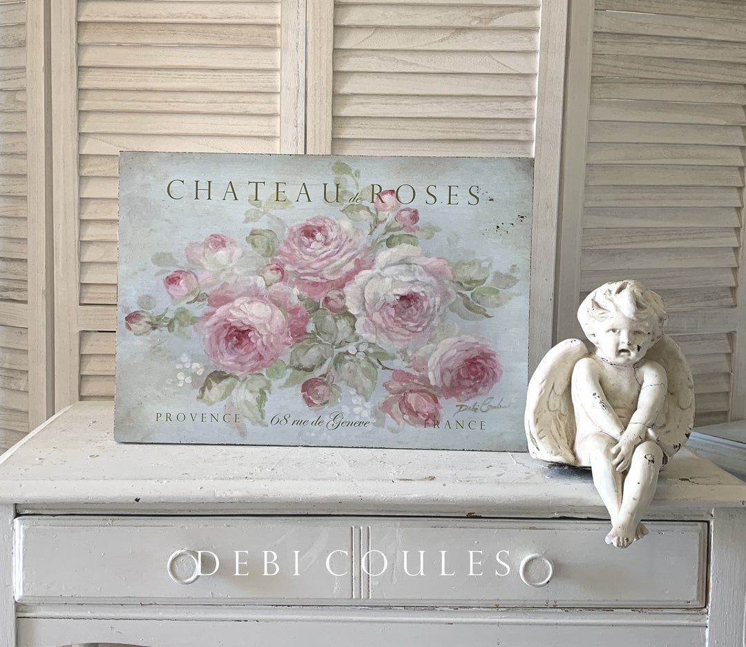 Adorned with gorgeous roses, hydrangeas, lavender, and peonies, my Country Cottage signs have a vintage and romantic, old-world feel with French inscriptions for that added flair. Romantic French country signs archival-grade printed on canvas or printed on natural wood for a more rustic cottage feel. Hand-painted on wood original cottage signs are also available.