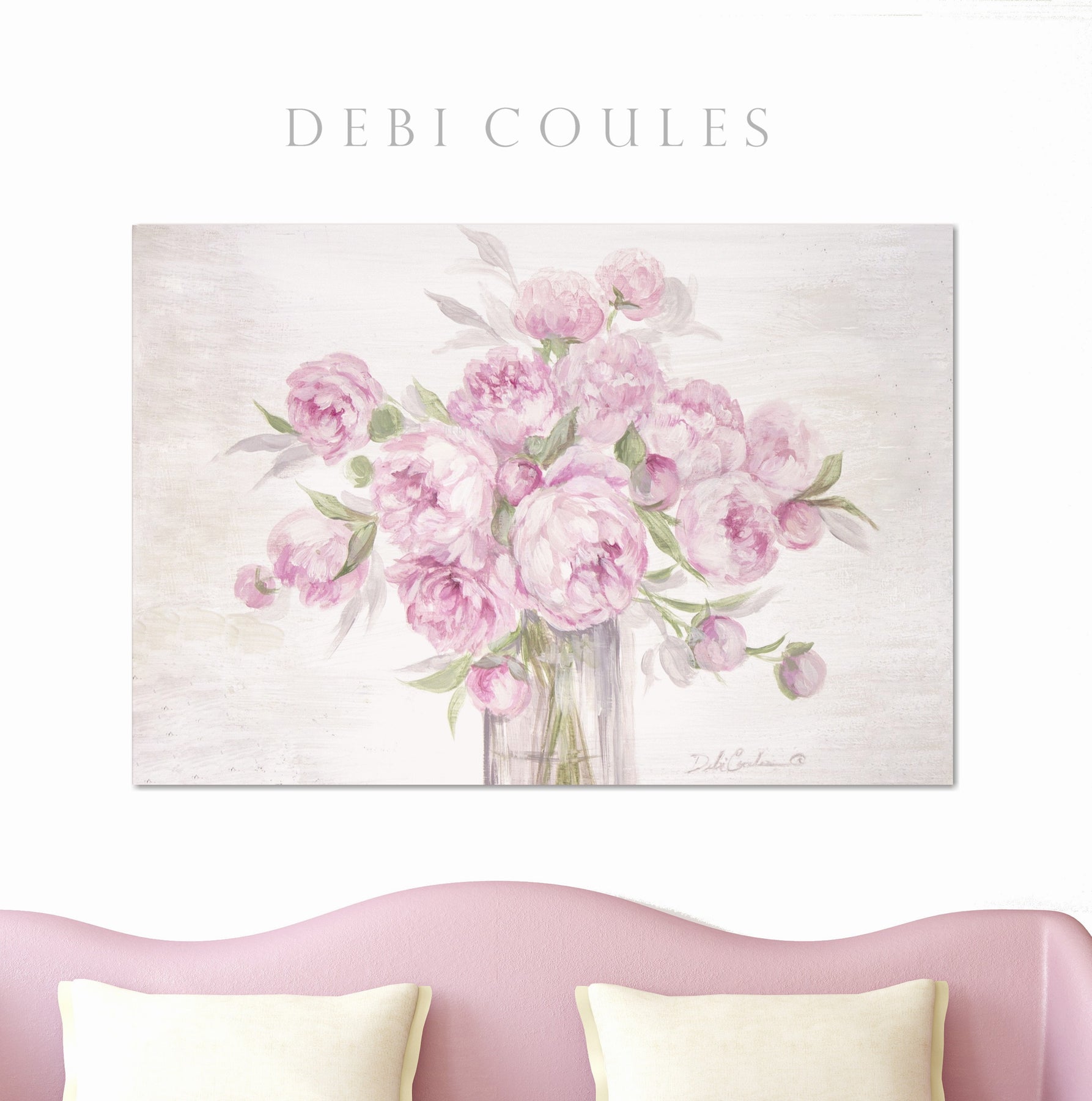 "Peonies in Pink" - Shabby-chic Artwork by Debi Coules
