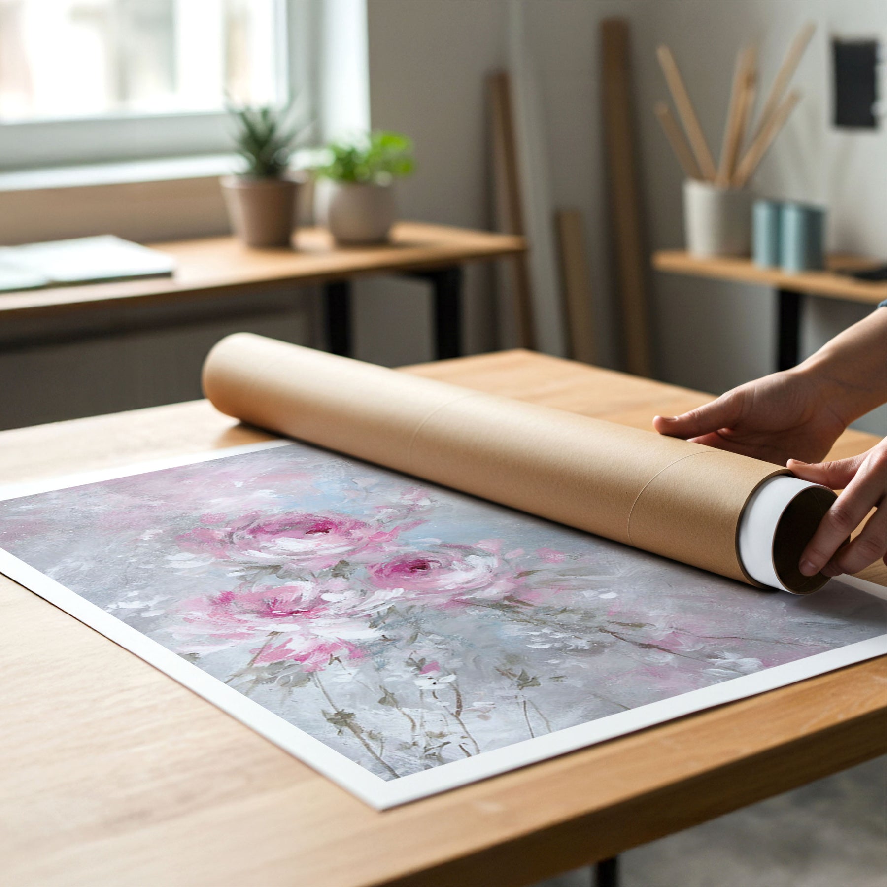 Giclee printed on archival-grade, pH neutral and acid-free canvas. The canvas is unstretched and shipped in a mailing tube, providing a more cost-effective shipping option for large canvas prints and international customers.