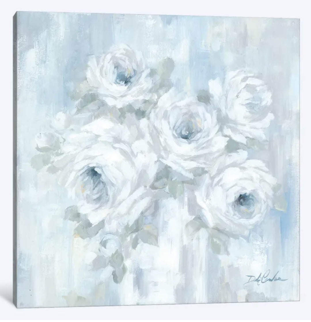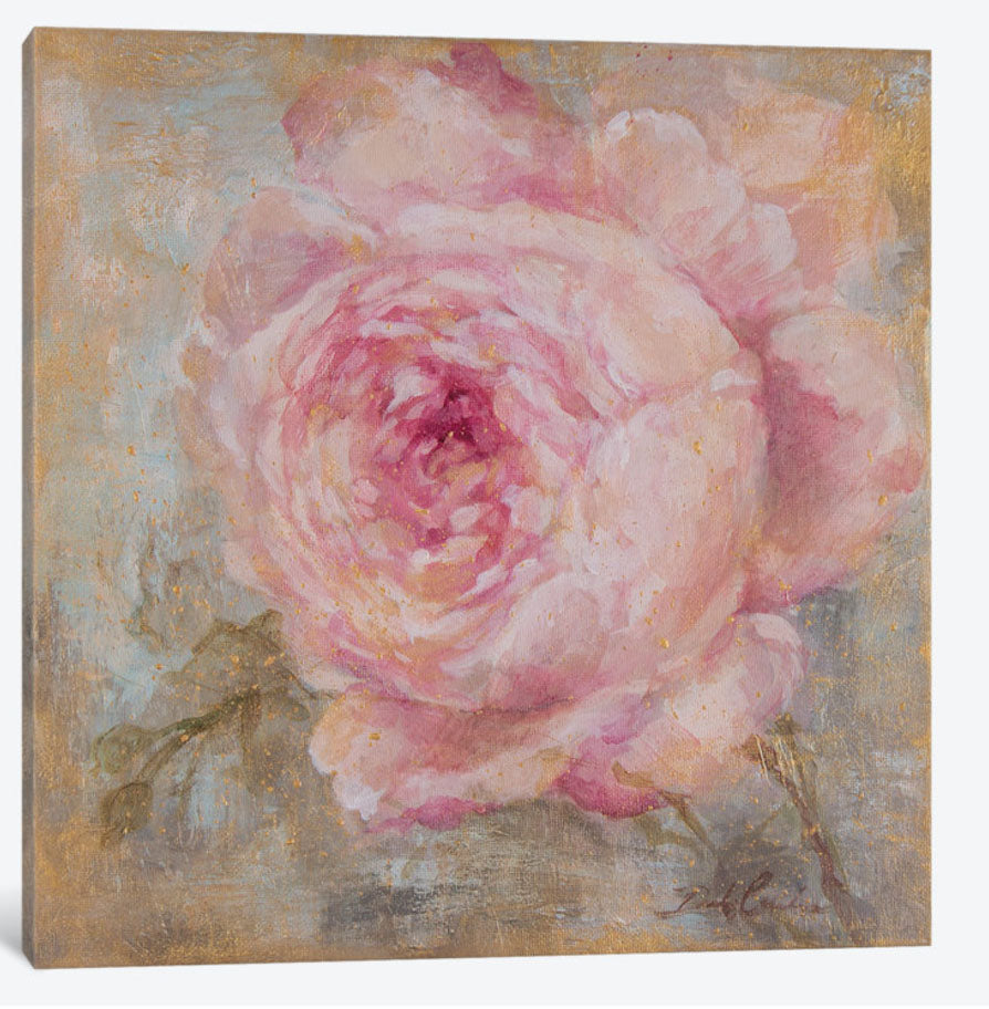 Roses, Roses, and more Roses! Though my artwork collections vary in style, vintage roses have been a consistent theme in my romantic paintings and have become the artistic muse for which I am most well known. If I'm painting an angel praying, she likely has roses in her hair. If I paint a cow, she may have a wreath of roses around her neck. My windswept tutus and ballet artwork always incorporate roses and petals. My vintage roses instantly connects with the romantic period, making it a compliment to a variety of interior design styles: shabby chic, French country, or romantic cottage.